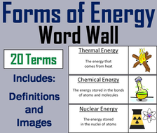 Forms Of Energy Word Wall Cards Teaching Resources