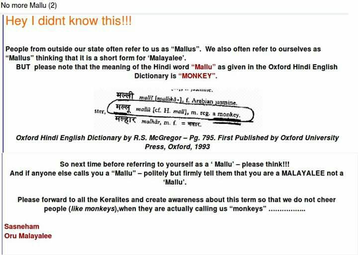 Malayalee Are Not Mallu Ape Is The Meaning Of Mallu In Hindi