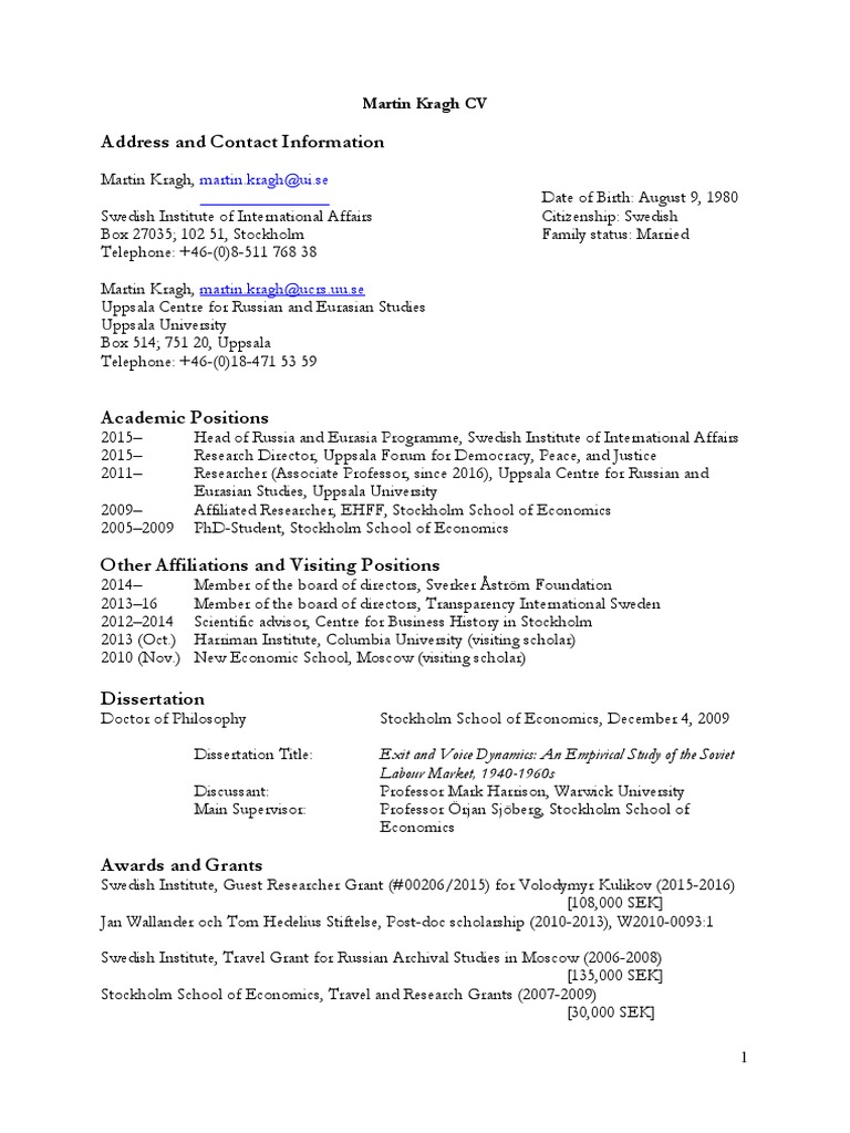 Martin Kragh Cv Sweden Russia Free 30 Day Trial Scribd